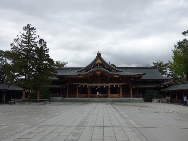 寒川から西の箱根や、富士山の方角は、比較的高い土地なのですが、この寒川神社は、湾のなかにあって、目前まで海だったそうです。いまのご社殿のあるのは、海抜8m。低い。