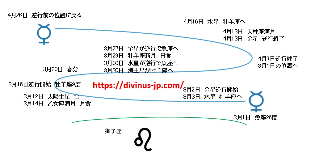 今回の水星逆行の間には、獅子座での新月と水瓶座の満月があります。