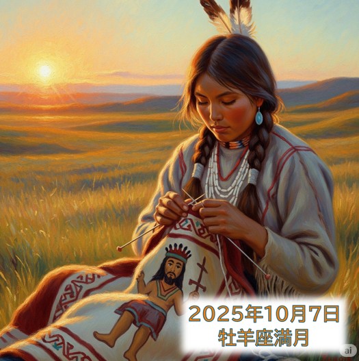 アイキャッチ画像は満月のサビアン牡羊座15度「インディアンが儀式用の毛布を編んでいる」
