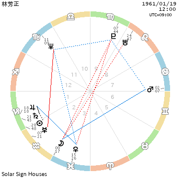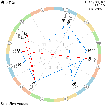 チャートは、さくっとホロスコープ作成 さんでつくりました → https://nut.sakura.ne.jp/wheel/horo.html