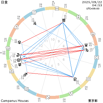 指導者、指導者の交代は月食より日食に象徴されるので、次の9月22日の日食のホロスコープも、参考までに